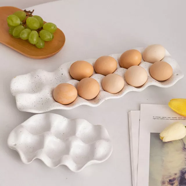 Elegant White Ceramic Egg Storage Tray – Fresh-Keeping Kitchen Organizer